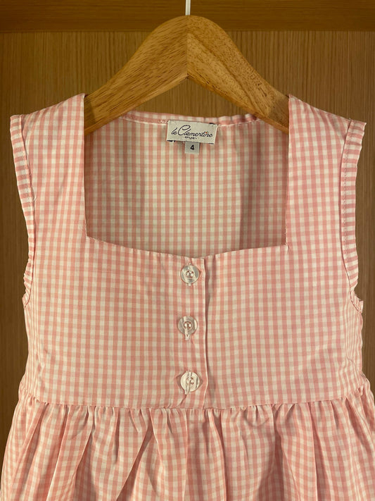 Pigiama spezzato in popeline a quadretti rosa con piping rosa