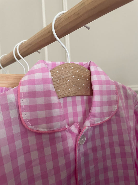 Pigiama spezzato in popeline a quadretti rosa con piping rosa